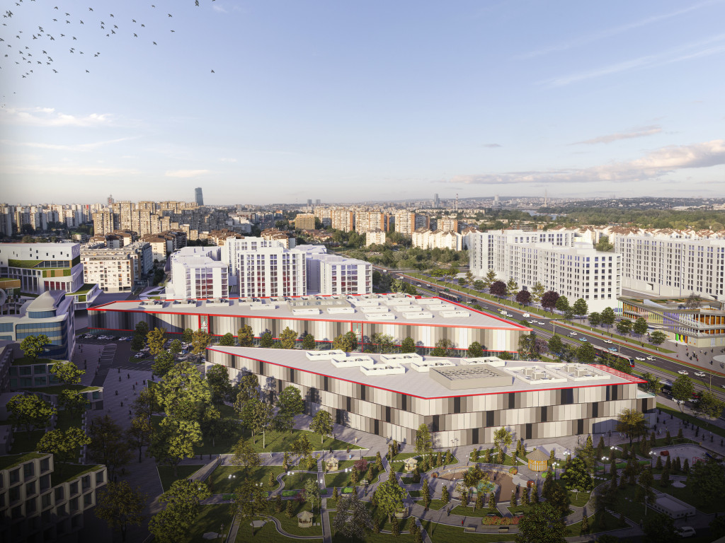 Photo: Render: Parallel StudioIzgradnja novog Kineskog tržnog centra još uvek iščekuje građevinsku dozvolu, a prema urbanističkom projektu biće realizovan u dve faze. Lokacija se nalazi uz stambene blokove u Ulici Mileve Marić Ajnštajn na Novom Beogradu, na svega nekoliko kilometara od objekta koji su kineski trgovci koristili u bloku 70, a koji je izgoreo u požaru prošle godine. Prva faza novog tržnog centra, koja bi trebalo da počne do kraja godine, sastoji se iz 22.327 metara kvadratnih komercijalnog prostora, dok bi u drugoj fazi bio dograđen još jedan prodajni objekat ukupne površine skoro 8.000 metara kvadratnih. Kako je jedna od namena ovog centra da omogući kvalitetan poslovni prostor za male kineske trgovce i firme, ovaj moderni tržni centar imaće čak 360 lokala u prvoj fazi i još 116 u drugoj.